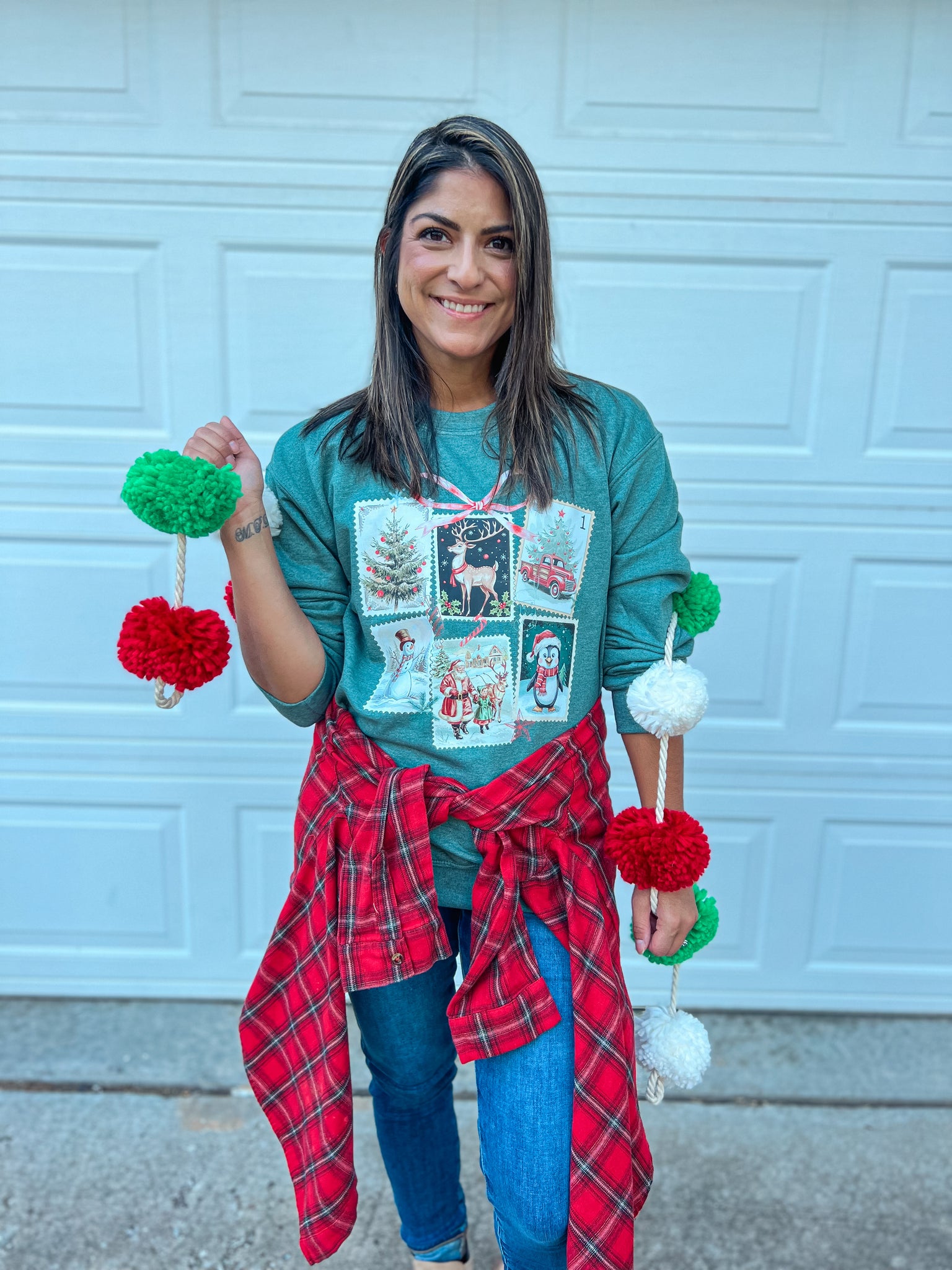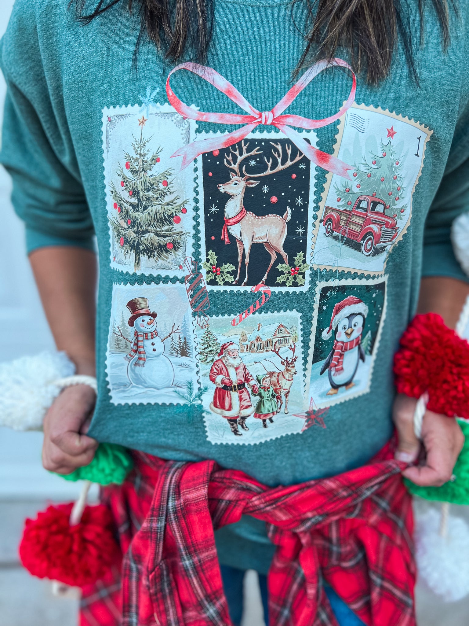 CHRISTMAS STAMPS SWEATSHIRT (H GREEN)