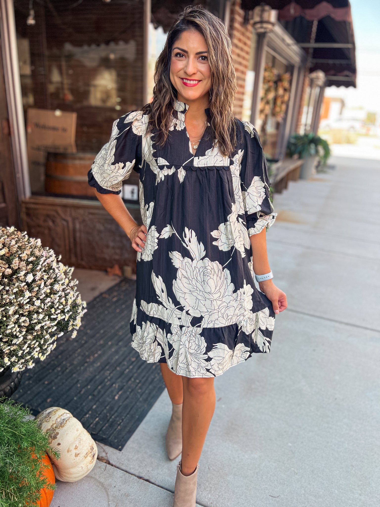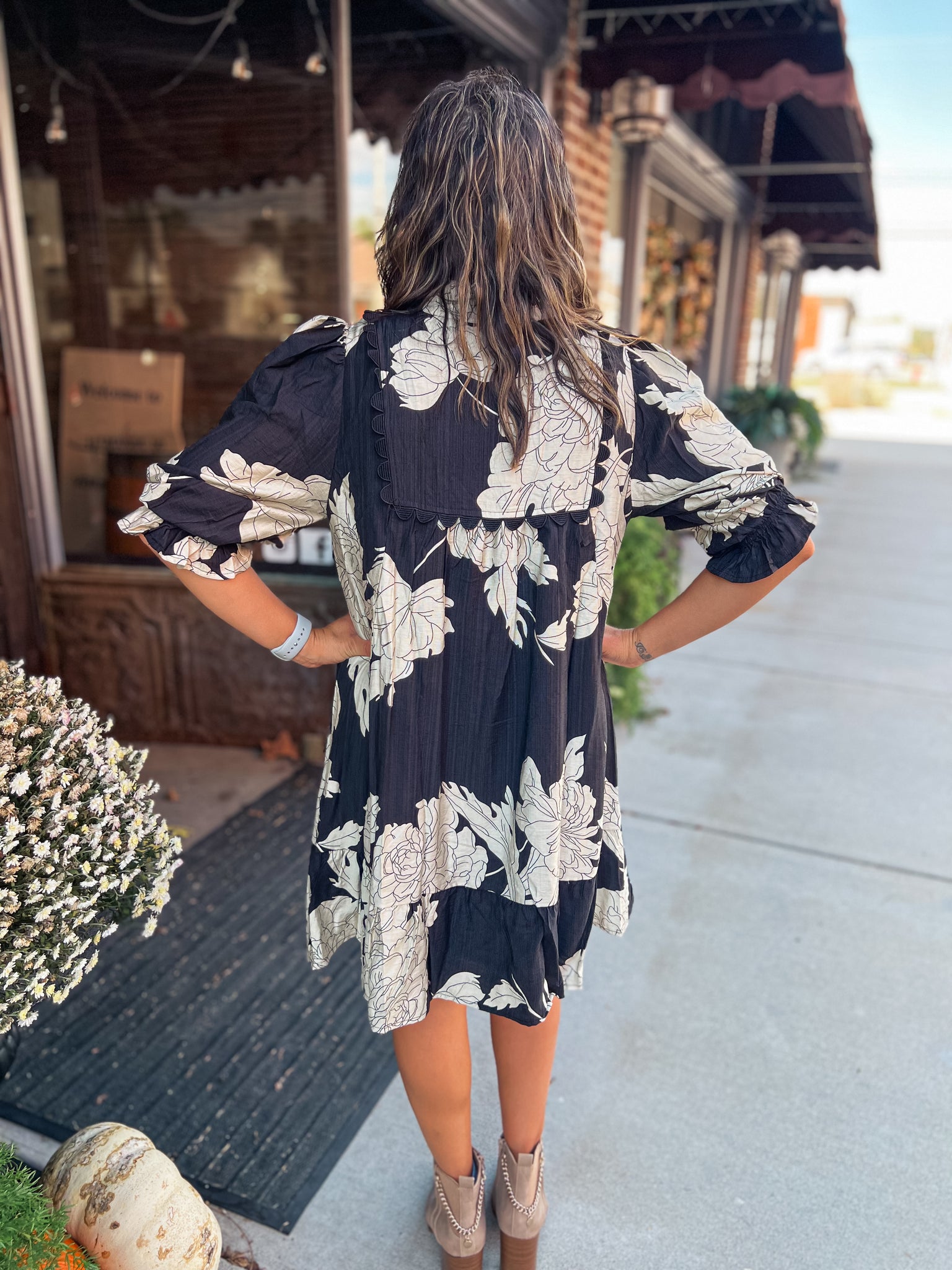BLACK & CREAM FLORAL DRESS