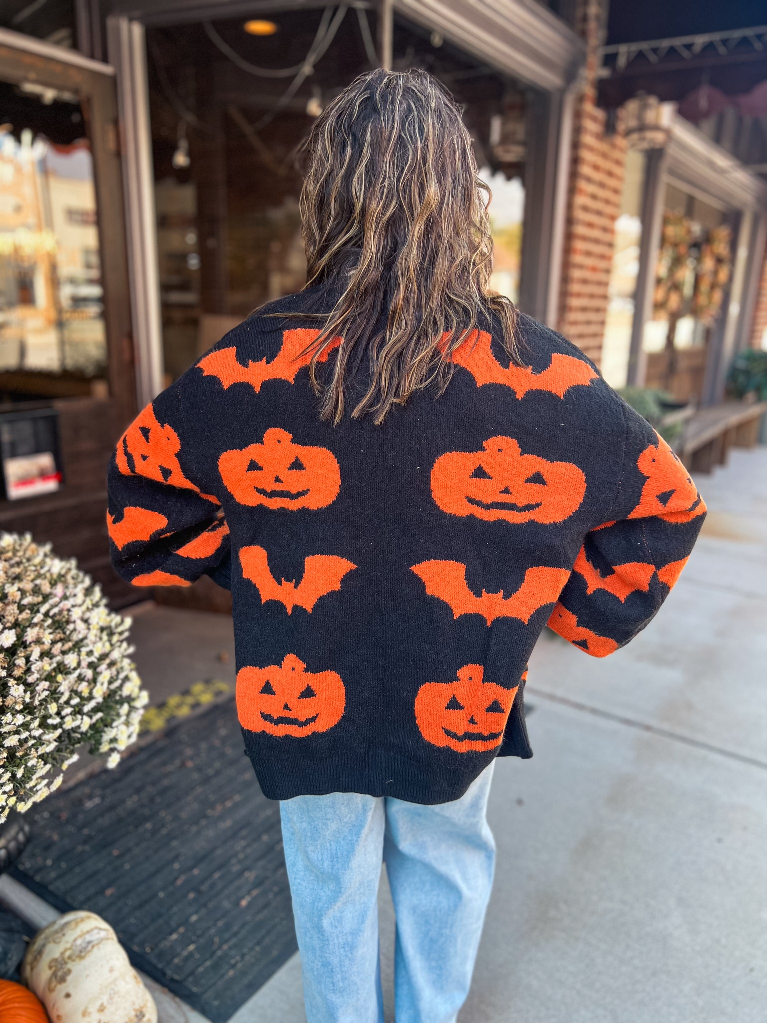 Halloween Theme Knit Cardigan With Ghost Sequins